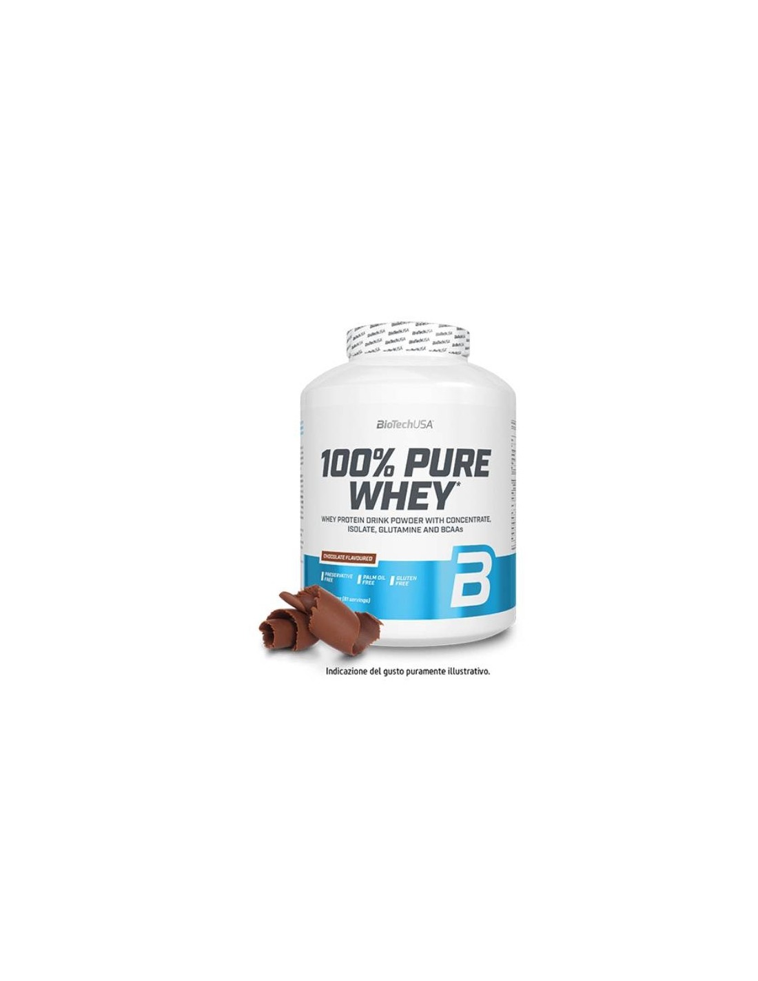 100% Pure Whey è un prodotto BioTechUSA: si tratta di un complesso di proteine del siero, con aggiunta di aminoacidi e anche di dolcificanti. Un prodotto ad alto contenuto proteico (circa il 78%) e con 4,6 grammi di BCAA per porzione (4,8 nella versione non aromatizzata).